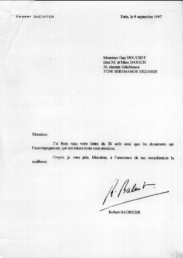 Lettre de M. BADINTER