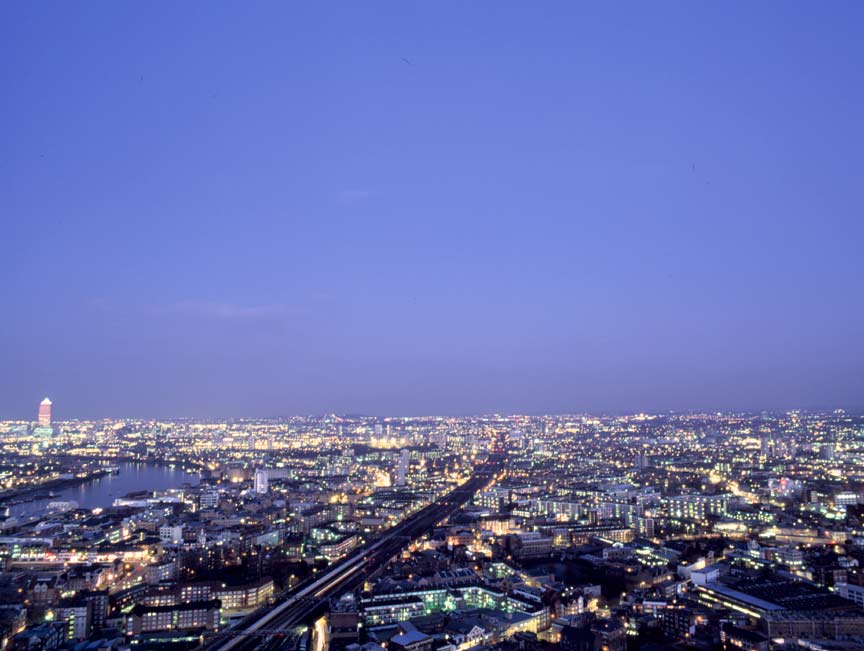 I took this shot from the top of Guy's Hospital tower looking back towards Tower Bridge with Canary Wharf in the distance refelcting the golden light of the evening sun. Bronica ETRSi with 180mm Bronica lens. |