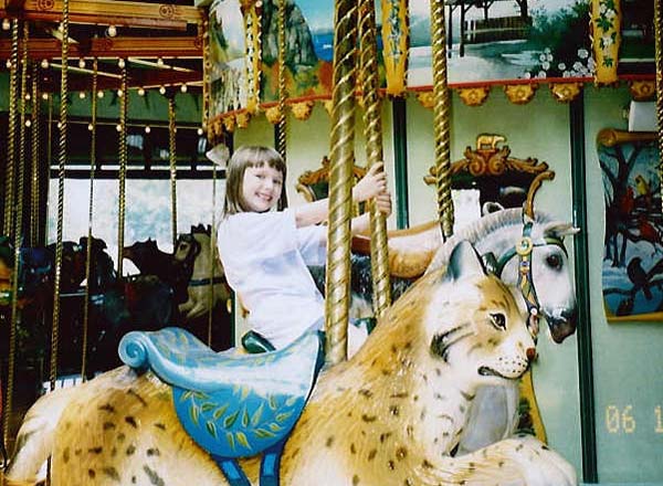 | Before we left we took the kids to the Merry-Go-Round. Here's Tanya riding a horse. |