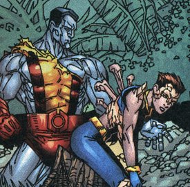 X-Men #80 (10/98)- The defeated team is on the ground recovering from the explosion and Marrow saves a powerless Rogue from a crocodile. As most of her bones are broken and useless as a result of the Grey King's touch, Marrow asks Colossus to pull an unreachable one from her back. She makes reference to his brother Mikhail and promises to fill him in later. Much later, the team recovers and manages to subdue their adversaries for the time being.