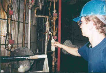 Here I am actually getting a line sample. There are several little valves all over, but I just had to memorize which ones are the ones I need to get. Many of them are labled if I can remember the general area of where they are.