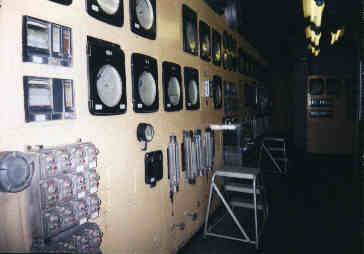 This is the panel board. As you can see, it has many interesting gauges and graphs. They tell me it is probably the oldest in Iowa or the nation, since it has been here since the place was built during WWII. It interesting for the antique factor, but several of the guys that work with it find it rather annoying. These days they could have it all be digital and on a computer so that they don't have to get out of their chair to go look at it! But I think it is pretty cool just to look at all the graphs and things.