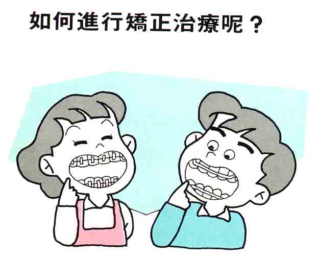 矯正治療乃依個別患者,所取得的資料作診斷,評估需要或不需要拔牙, 以最適切處置,所做的矯正裝置.這裝置有的可以自行取下裝上的[活動式] 裝置,亦有黏在牙齒上的[固定式]裝置.附屬其他一些口內掛橡皮筋,口外頭套帽子( Head-gear或 J-hook)等,進行矯正治療.