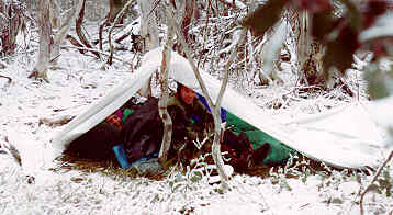 The seven people in the group had some contact with each other before the trip, and three or four of us were close friends. We lived together for the week and knew each other like brothers and sisters. We set up sleeping arrangements and put up camp. Our camp consisted of the tarp and two logs we had rolled over beside it to sit on. The two girls on the trip made what has been know since as the killer tortilla sandwiches. We soon found out we didn't bring necessity number one, toilet paper. We still hadn't used all the tortillas.