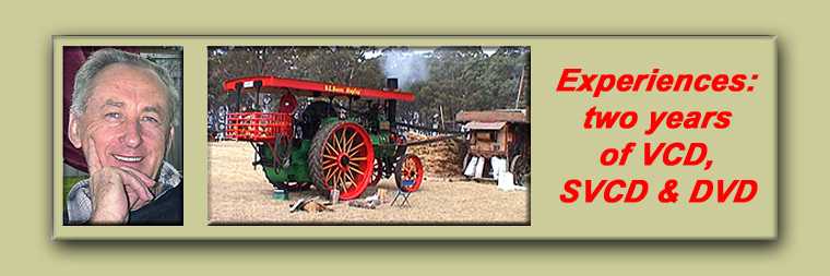 In April 1999 I discovered something called a VideoCD which could be played in a DVD player from CD-R media. Hell what was a DVD player? I did not have one and even now, I have played less than 10 hired DVD’s. I read about the process on the “VCD Forum” and it all started from there using some very sound advice from those experts of the time. I think it is more important that I actually took notice and applied what was said, not always the case for others it seems. Today I am authoring in DVD-R in just two years made possible by the enormous turn around in software provision. Even so, I am personally not happy with some of the provided interpretations of what is required and I think that’s the first thing to recognize - nothing is consistent and there are so many options that it is almost the luck of the draw to succeed in getting real quality out onto the TV screen as the prime outcome. Most professional level users will comment as I have done on several occasions, that the programmers do not use there product, that has been a very common thread from as far back as 1994. In my view it still applies today.