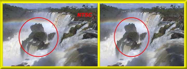 Image 1 is the full 6 x 4 scan image (1800 x 1200 ie 3:2), the red rectangle is the 4:3 crop off. Image 2 is the 4:3 image resized for NTSC at the required aspect ratio of 3:2 (720 x 480) and you will note how the image is stretched sideways. When processed and played full screen on the computer or TV you will actually see, not image 2 but image 1 inside the red rectangular frame where "circles are circles".