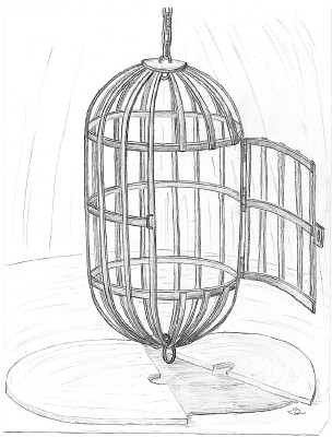 | Copyright 2002 by dungeonmouse Helga comes early for Diedra this evening. Diedra counts only 756 laps around the wheel when Helga arrives. Usually she pushes her spoke at least 900 times round the circle each shift. Helga unlocks Diedra's wrist chains from the spoke and fastens them to the metal belt around Diedra's waist. She grabs the chain attached to Diedra's steel collar and leads Diedra from the wheel chamber. Normally, Helga administers punishments then feeds the prisoners before releasing them from the wheel and returning them to their cells. Diedra frets over the break in routine. With Helga, “new” means “bad.” Diedra prances along behind Helga, taking two steps for every one of Helga's so her manacled legs can keep up. Helga leads Diedra down a corridor Diedra has never visited. The floor slopes down and becomes rougher. Diedra's bare feet, toughened by walking on the bare stone floors, handle the sharp edges well enough but as dim light bulbs in the main dungeon give way to tar torches, Diedra struggles to keep her footing on the uneven floor. A metallic creak draws Diedra's eyes from the floor. She stops just short of running into Helga. A smoky torch splatters yellow light around a small chamber. Several rusty shafts run along the ceiling. One shaft creaks as it rotates slowly. A chain, wound around the shaft, disappears into a hole in the floor. Two guards peer down the hole. At length, the rising chain pulls a cage through the hole. The guards’ shadows prevent Diedra from seeing inside the cage. The top half resembles a large bird cage, the rust-coated bars arching over in a domed top. As the cage clears the hole, Diedra sees the bottom half mirrors the top. A large ring hangs from the bottom. One guard clips a chain to this ring and pulls the cage sideways enough to clear the hole. The guard steps back and Diedra draws in her breath. Inside the cage slumps a girl. Her wrist chains hang from the top of the cage and her ankle chains fasten to the bottom. The cage provides just enough room for her to sit inside, one leg tucked under her, the other dangling between two bars, swinging at an odd angle on the end of its chain. The girl's skin shows a blue cast even in the yellow light. The guards unlock the cage door and unfasten the girl's chains from the cage. They pull her out. Her body flops forward and the guards struggle to keep their grip. They wrestle her body to the door then lose their grip. She slithers out the door without twitching or jerking, landing in a jumble of limbs with a soft plop. The guards pick up the girl, one each on her wrist and ankle chains, and drop her down the hole. Diedra glimpses her blue-white face framed for an instant in the black hole. “She did poorly.” Helga notes without emotion. Helga and the guards lead Diedra to the cage door. Diedra stares into the cage then looks at Helga. Diedra’s brain screams but only a small croak comes from her throat. "Your turn, Diedra." Helga points into the cage. Diedra twists in the guards’ grip. Helga slams the butt of her riding crop into Diedra's solar plexus. Diedra doubles over. Helga sweeps her up like a doll and tosses her in the cage. The guards fasten Diedra into the cage before Diedra regains her breath. One guard closes and locks the door. The other eases the chain leading to the bottom ring and swings the cage back over the hole, unfastening the bottom chain when the cage hangs steady. The shafts and gears overhead shudder and creak. The cage jerks downward. Diedra clings to the bars of the cage. Her brain commands her body to scream, yell, pull at the chains, beat on the bars, do something! Her throat constricts into silence. Her hands and feet hang against the bars, quivering tubes of mush. She stares at Helga, pleading with her eyes. Helga stares back. The cage disappears into the caverns. Diedra locks her eyes on the circle of light coming through the hole. The mechanism creaks and bangs, lurching the cage as the chain unwinds into the abyss. Finally, the cage stops with a clank. Diedra stares upward at the tiny light far above. The guards close the hole around the chain, blocking the only glimmer of light into the cavern. Diedra stares up into the blackness. In her mind, she stares at a little circle of light. A blue-white circle of light. A circle framing a pale face. A contorted face with water-logged blue skin and milky fish-eyes. Her own skin and eyes. ********** Diedra sits in the dark clutching the bars. She sits for hours, maybe days, maybe just many long minutes. She wonders about The Bitch. No other gods or goddesses visit here, that’s for sure. Everyone pays lip service to the dungeon’s deity but no one really believes in Her. Except Helga. Helga worships the Bitch with a passion. Diedra mumbles a prayer to the Bitch and stares into the blackness. Nature catches up with Diedra. She shifts around until she sits between two bars and relieves herself. After a few seconds, she hears a soft splash. "The water in the caverns will rise and drown all the prisoners if you lazy twats don't push harder on that wheel." Hilda had said. Diedra thought Helga said that just to scare the prisoners. It worked. Diedra is terrified. Diedra sits in the inky black. The cage rocks on the end of the chain. Eventually, exhaustion and boredom take their toll and Diedra nods off. CLANG!!!!!!! The cage lurches drunkenly. Instantly awake, Diedra clutches the bars and peers into the darkness. The cage descends slowly. CLANG!!!!!!!!! The cage lurches and drops a half meter or so, the mechanism banging wildly. After an agonizingly long descent, Diedra hears water moving below. Seconds (or minutes or hours) later, she feels the water flowing slowly through the bottom bars of the cage. The water’s touch even though warm and gentle sends a shock through her body. Diedra shrieks and jumps up in the cage. The cage allows her a fraction of a meter before her head strikes the top. The cage cont