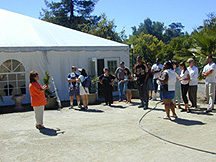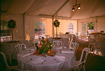 The Marquee seats 220 guests and is great for a company meetings or conventions, wedding receptions or gala events. Elegant white canvas structure, with soft white draping overhead, cathedral style windows, French doors, built-in parquet dance floor, subdued lighting and outdoor patio area. The Marquee is perfect for an all-white or pastel decoration scheme. An inviting atmosphere for conventions, meetings, faires and weddings.