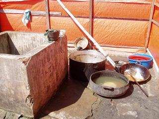 洗い物をする井戸。ここでマンディ(水浴)もするので、まわりはシートで覆っています。