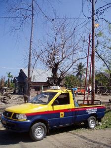 津波の被災地の復旧が少しずつ進んでいます。写真は電気工事をしているところ。ここは第1回訪問の時にも訪れたところですが、廃材の片づけも進んでいました。家の再建は、いつかなうのでしょうか。