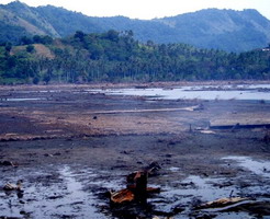 田園風景が津波被害跡のそれに変貌してしまっています。