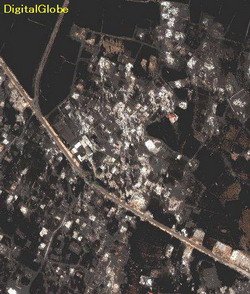 http://www.digitalglobe.com/tsunami_gallery.html このサイトにある、津波前とあとのバンダ・アチェの衛星写真。ぎっしり詰まって並んでいる家屋が、すべて破壊されているのがわかります。 Banda Aceh, before and after the tsunami. Satellite pictures on this website. You can see that all the houses were washed away.