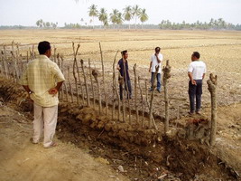 試験田として2000平方メートルの土地を使うことにしました。EM発酵液ができあがるまでの間にここを耕しておいてもらい、さっそく散布実験を始めます。ただし、EM溶液を作るにも、そのための水が井戸水に頼らざるを得ず、しかも深く掘った井戸ですらもわずかながらにも塩分を含んでいる地域。雨が降り出したら土壌改善に拍車がかかるはずですが、それまではこの水でEMに頑張ってもらうしかありません。