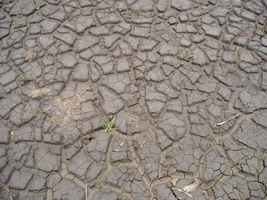訪問前日、雨が降ったそうです。粘土が溶けて、ひび割れしたところに流れて埋まっています。非常に細かい粒子の泥です。 It had rained the day before. The fine-grained clay has melted and filled the crack.