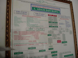 While chatting together, we talked about the picture frame on the wall. A genealogy of Islamic prophets. For the most part they are in common with the prophets in the Bible. Mr. Ismail can talk frankly about these issues, and he often preaches at the mosque.