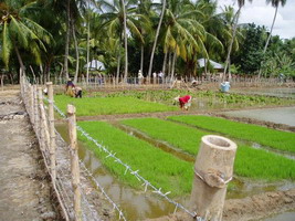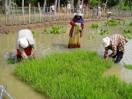 非常に手際よく苗をまとめています。翌朝から田植え作業に入る予定だったのですが、村で葬儀が行われることになり、朝からの作業は夕方に繰り越されました。私たちは田植えの開始を見たかったのですが、時間の都合でできなくなってしまいました。稲の生長したところを見に来ることになります。