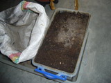 4.それを、処理用ケースに入れます。できるだけ広くならすようにして。その上に、薄く土をかぶせます。これで、終わり。 ![]()