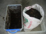 こうして熟成した「土」は、堆肥として使えますが、うちでは、大部分、また生ごみ処理用の土として利用します。その場合、利用する数日前からビニール袋をはずしておいて、土を乾燥させておくと、非常に扱いやすくなります。