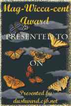 | Please note: Your site will not be given an award if any of the following problems occur: - Sites containing nudity, racism or hatred or links to sites with such content - Sites that take over a minute to load - Sites with an immense amount of broken images and links - Sites that are unreadable (i.e. dark blue text on a black background) - Sites that have continues script error messages, way too many popup windows and those are not organized at all and make it impossible to navigate through them Your site does not have to be a Wicca or cat related site in order to win except for the "Mag-Wicca-Cent" award. Those are awarded only to Pagan related sites; if qualified, a Wiccan site can receive both a Wiccan award and a Gold, Silver or Bronze one! |
