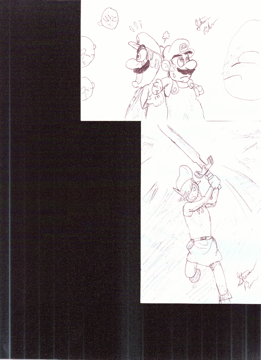 Two sketches of two popular game heros. Mario, Lugie, and Link.