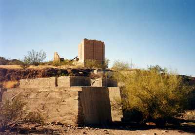 | Swansea is out in the middle of nowhere in the deserts of western Arizona. It is located on dirt raods east of Parker, Arizona. The first prospectors were in this area in 1886. They weren't too pleased when their ore samples showed mainly copper and small amounts of silver. In ten years, interest would again be generated in the area. Copper prices had been on the rise for some time. But there was a huge problem, how were they to ship the ore out of such a remote place. The transport costs looked to be to cosly to make mining profitable. All that would change in 1904. A new rail line was proposed from Congess, Arizona to Parker. In 1907, the Arizona and California Railroad had arrived. All the claims in the area had been consolidated into the Clara Gold and Copper Company. One of the main promoters for the mine and the town was named George Mitchell. He named the town after his homeland, Swansea, Wales. He was a metalurgist and a very good talker. He managed to get many investors in on the company. He also managed to build a smelter that was very big. Unfortunately, it was too big to be run effciently and still make a profit. He also managed to get many extravagant places built. Swansea had a car dealership, theaters, restaurants and many saloons. Many were built and running before there was enough ore coming out of the ground to support them. Swansea was a town that was ready to be yesterdays news when George Mitchell left. The year was 1916. After his departure, Swansea, ironically, saw a profit for two years by sending the ore to be smelted in Sasco (also featured on my site) and other places. After WWI, copper prices fell and operations slowly came to a halt. By the mid 1930's, Swansea was completely a ghost town. Today, the reamins include what is left of the smelter, two rows of old miner's quarters and an erroding old train depot. |
