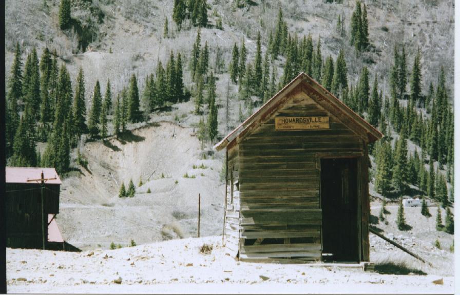 |                          HOWARDSVILLE Howardsville was most likely named for prospector George W. Howard, who built a cabin here in 1872. The town was fisrt named Bullion City, after the mining company in the area that made the first big strike. In 1874, the name changed to Howardsville. The Little Nation Mine was also located nearby. The tram terminus for the mine is still standing today. By 1939, the mines had played out and most people moved away. The other remains include the general store, a log cabin, The Pride of the West Mill, and a few other buildings.  |