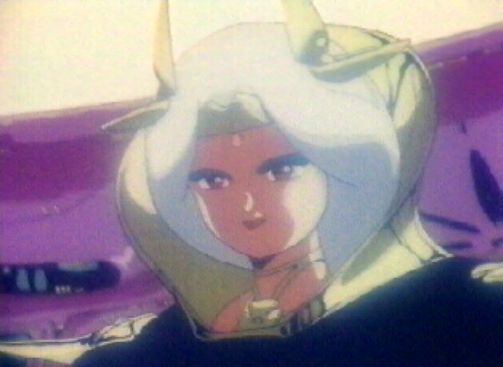 C-ko's Little Mommy, the Fifth Queen of the Lepton Kingdom of Alpha Cygni is an interesting character in that for much of Project A-ko Final you don't even see her, she's just heard as an off screen voice while showing images of the entire royal fleet of Alpha Cygni. She sounds very authoritive and regal, but this is thrown out the window when she finally meets C-ko again after more than 16 years of separation. Appearing very regal, and having more that a passing yet coincidental resemblance to Miss Ayumi, she decsends from the open hatch of her Egota flagship to greet her long lost daughter.