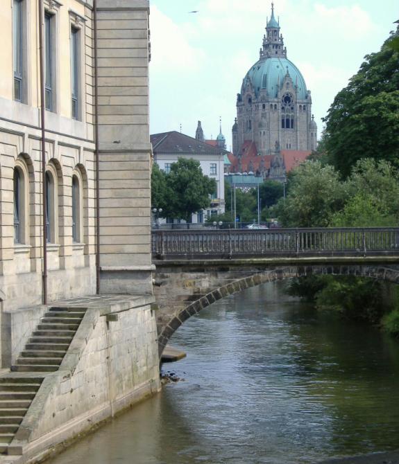 Esta es otra vista de la municipalidad, desde el castillo de Hanover. Me gustan las escaleras que bajan al rio... no comunican con ninguna puerta (!!)