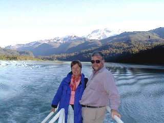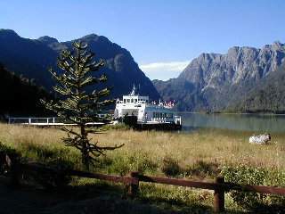 | "Cruce de Lagos" is the popular way to cross from Puerto Montt (Chile) over the top of the Andes mountails into Bariloche (Argentina) by a combination of boats and busses. It was an all-day trip, but the weather was gorgeous and the volcanic mountainds every bit as breathtaking as the Canadian Rockies. |