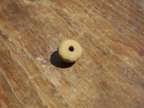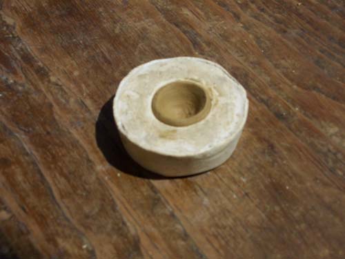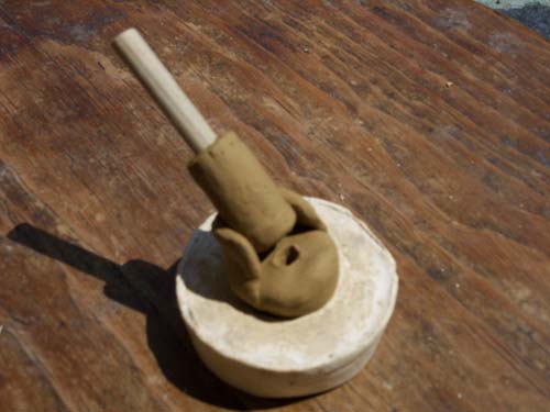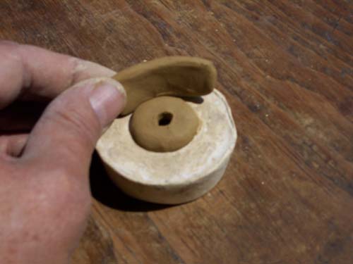Foto 5. Una tortillita de barro se pega en el extremo del tubo de barro;