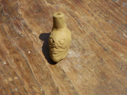 Foto 23. El silbato se quema y se patina, en este caso con barro, para dar la apariencia de que estaba enterrado.