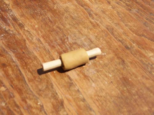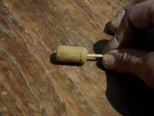 Foto 2. La tira aplanada se coloca alrededor de un palito redondo, para moldear el canal del aeroducto;