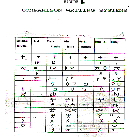 We were able to decipher the Oued Mertoutek inscription, and the Minoan Linear A, Harappan writing and the Olmec script because of the Vai script (Winters 1984a,1984b,1984c). Winters (1977,1979) discovered that the Vai syllabary of 200 characters matched all the signs in the syllabaries of Crete, Olmec America, Oracle Bone writing of China and the Harappan script (Winters 1979,1983b,1983c). And that due to the genetic linguistic unity of the people who made these signs, when you gave the signs in these diverse areas, the phonetic values of the Vai signs, but read them in the Dravidian or Manding language you could read the ancient literature of Crete and the Indus Valley (Winters 1985b). Thus the syllables which retain constant phonetic values can be used by different groups to write their own languages.