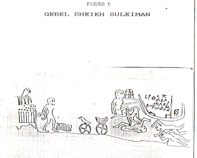 But in reality we find more than these figures on the Gebel Sheikh Suleiman inscription which appears to date back to the A-Group period of Nubia over 5000 years ago. This is obvious when we examine the photograph of the Gebel Sheikh Suleiman relief.