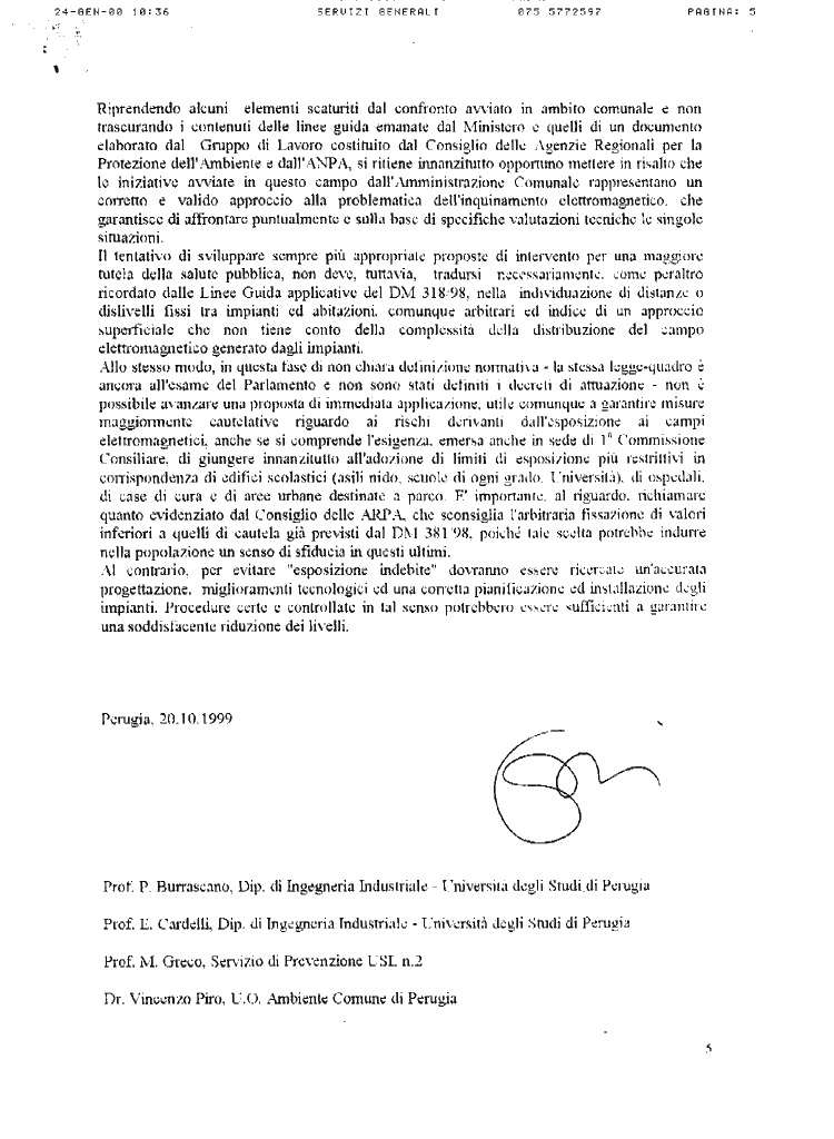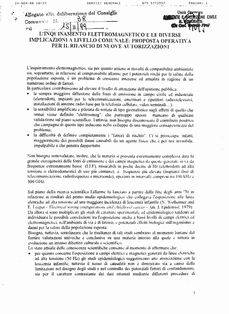 Allegato alla deliberazione del Consiglio Comunale di Perugia n. 38 del 15/11/1999