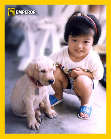Here with Emperor is my niece, Kai Jiet. She's so afraid of dogs. After being persuade by us, she's finally touching Emperor, but just for a shot.