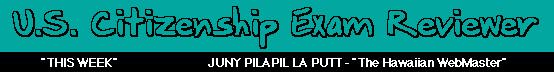 Just about five years ago, my wife, our four adult children, and I took the U.S. Citizenship Examination. It consisted on an oral and a written examination which was given at the Immigration & Naturalization Service in Honolulu. There was no doubt that it was a very simple examination. Why do I say this? Well, it is because we were well prepared for it. We all passed it and on September 17, 1992 (Citizenship Day), we were sworned in as citizens of the United States of America ... just about 5-1/2 years after we immigrated from the Philippines.There are still many others who will soon be taking this same examination. And just like us before, these immigrants are now probably trying to exert all efforts to prepare for the examinations. It is most probable that these people are asking themselves how to prepare for it. What subjects are to be reviewed? Where to get references or review material? And probably a host of other things are still unclear in their minds.