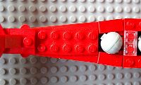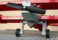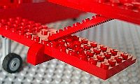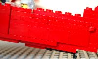 The two errors of the model is visible it this view: both the rudder and the wheels are too big. Though the small 1x1 wheels is actually more in the right scale I think they look ridiculous  |