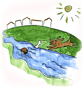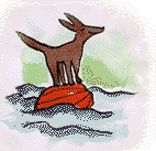 | Am Ufer des Baches befand sich ein kleiner Hund, der so lange verzweifelt seinen Knochen zu erreichen versuchte, der ins Wasser gefallen war bis er schließlich und endlich selber hineinfiel.Einmal im Wasser fühlte der kleine Hund sich vollkommen verloren, armer Kerl schon erwachsen, hatte er jedoch nie Zeit gefunden Schwimmen zu lernen.Während er diese trüben Gedanken hatte, wurde er plötzlich von unserem Ball angestoßen, welcher ihm seine Hilfe anbot. | ![]() |
