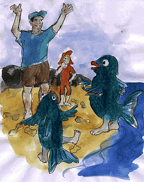 caught up with her, Georgie asked are we the first things ever to come to this beach? Oh no said her daddy Only a few hours ago, fish were where we are standing now. |