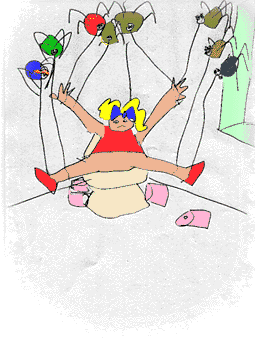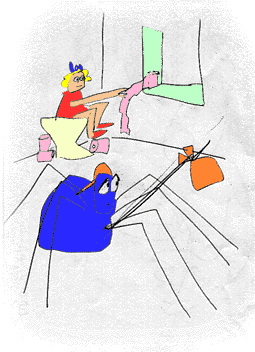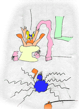 Bald mußte er jedoch feststellen, das sein Zuhause besonders gerne von Marianne benutzt wurde, der kleinsten Bewohnerin des Hauses.Marianne hatte erst kürzlich gelernt die Toilette zu benutzen und hatte noch etwas Probleme, das Klopapier zu erreichen. Daher benutzte sie hauptsächlich die Behausung-Pardon die Klopapierrolle, in der sich die kleine Spinne häuslich niedergelassen hatte. Es war die einzige, die sie mit ihren kurzen Armen erreichen konnte. Jedesmal, wenn sie zu der Papierrolle griff, ereignete sich ein kleines Erdbeben in der Wohnung der kleinen Spinne Enrico. |