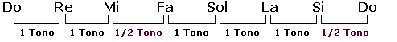 La distancia tonal (intervalo) entre Mi y Fa, y entre Si y Do es de un semitono (ó 1/2 tono). Para