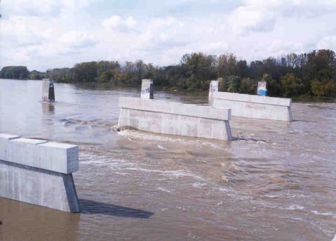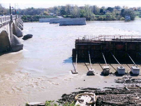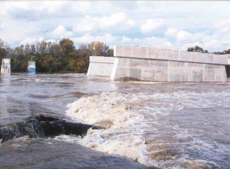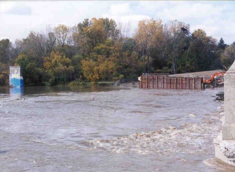 North cofferdam overrun by flood |