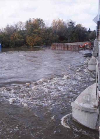 Flood rages around Piers #4 and #5 |
