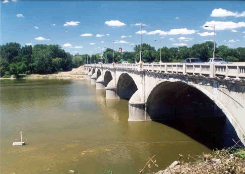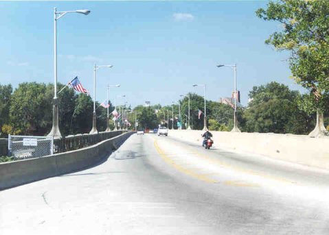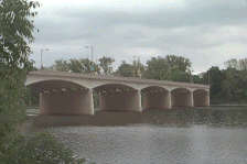 of seven reinforced concrete arch spans carrying four lanes (reduced to