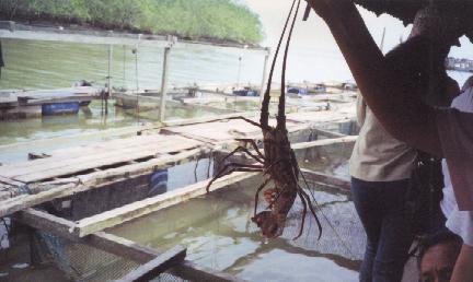 another trap, the kelong helper showed us numerous struggling fishes on the net as the net was