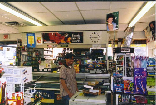 Rich gets ready to pelt the cashier with cigarettes while chanting, "CANCER MERCHANT!!!"