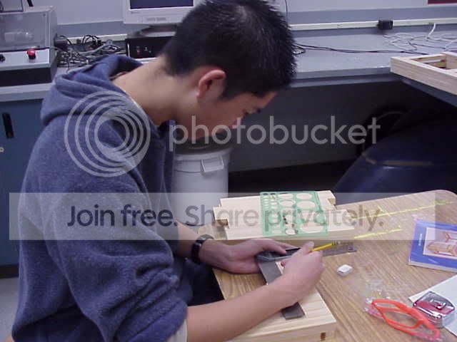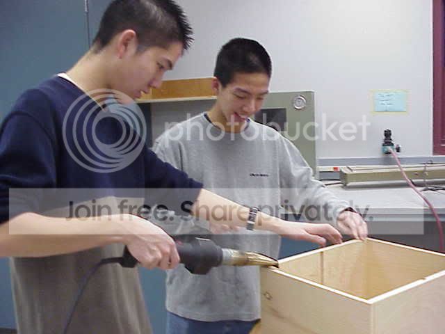 Here Barton was helping me work on wood edge trim for Caleb's bookcase.