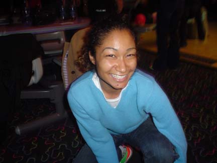 Awww what a sport.. Tashana is lacing up and smiling (cuz we all know how sexy it feels to be wearing bowling shoes)