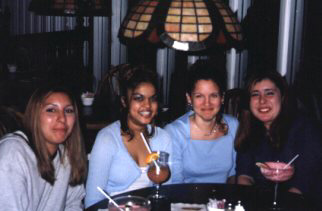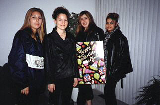 left-right: Lisa, Alicia, Me (holding a giant b-day card), Jooliee